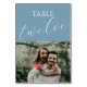 The table number itself is more than a mere numeric identifier – it's a personalized canvas for the couple's journey. Incorporating a photo element, this table number transforms into a visual narrative, showcasing the love story that led to this momentous day. A snapshot frozen in time, the photo adds a touch of intimacy, allowing the guests to connect with the couple's journey and share in the joy of the occasion.