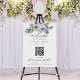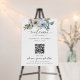Dusty blue floral wedding personalized welcome sign with QR code or online photo sharing with watercolor blue flowers.