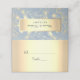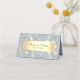 Modern, elegant, faux gold foil and dusty blue wedding place card with luxury floral lace.