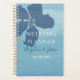 Simple, modern, elegant, watercolor dusty blue wedding planner with big navy flower.