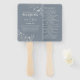 Elegant, botanical, vintage, floral dusty blue wedding program hand fans with periwinkle wildflowers lace and simple modern calligraphy script.