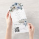 Elegant dusty blue floral all-in-one wedding invitation with QR code.