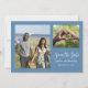 The dusty blue and white save the date is simple and elegant. It will look beautiful with simple wisps of baby's breath or as a complement to a colorful bouquet of your favorite flowers. The QR code makes it easy for guests to get the details for your special day.