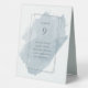 Dusty blue watercolor splash with a double silver border table number with a seating chart on the back all in a serif elegant font ready for your customization. Check out our store for more matching items.
