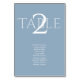 Chic and elegant. These table number cards feature a contemorary set of fonts in light blue and white, against an attractive dusty blue background. Included are a table number and guest names. The template can acommodate up to 12 names easily. Edit each card individually with number and guest names and add to cart. Designed to coordinate with other items in the collection.
