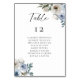 Elegant dusty blue floral wedding table number and seating chart with guest list
