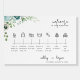 Wedding timeline with dusty blue floral, minimalistic text font and calligraphy names.