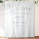 This elegant wedding photo backdrop in dusty blue typography can be personalized with all your special wedding day information. Designed by Thisisnotme©