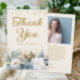 Elegant dusty blue and white roses, floral, and greenery women's birthday party "Thank you" card with gold glitter. This card is printed on the front and back and personalized with her name, age, and photo. Contact me for assistance with your customizations or to request additional matching or coordinating Zazzle products for your party.