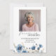 Our lovely Dusty Blue and White Floral Photo Funeral Memorial Program is a gentle way to invite your friends and family to celebrate and remember the life of your loved one. There is a place for your picture and personal details on the front, along with some pretty script typography. We included plenty of space on the back for your Order of Service, along with our coordinating floral design. Look for our complementary pieces such as thank you cards, invitations, etc. in our Dusty Blue and White Floral Funeral Memorial Collection, or our larger Memorials & Celebrations of Life Collection.