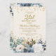 Dusty Blue White Floral Gold 21st Birthday Invitation