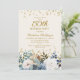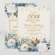 Dusty Blue White Floral Gold 50th Birthday Invitation