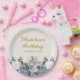 Dusty Blue White Floral Gold Happy Birthday Name Paper Plates
