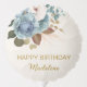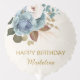 Dusty Blue White Floral Happy Birthday Name Balloon