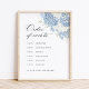 Featuring soft watercolor hydrangea florals, refined typography, and a clean vertical layout, this sign is ideal for ceremony entrances, welcome tables, or reception display areas. The structured timeline format ensures clarity for guests while maintaining an elegant, cohesive aesthetic suitable for classic, garden, coastal, or modern weddings.