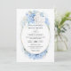 Dusty Blue White Flowers Budget QR Code Wedding Invitation