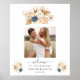 Dusty Blue White Peach Roses Wedding Welcome Sign