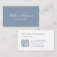 Dusty Blue White Simple QR Code and Calligraphy Business Card