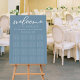 This dusty blue wedding seating chart foam board exudes tranquility for a summer coastal reception by the sea. Personalize this light grey blue decor with elegant minimalist white typography to match your serene bridal color scheme.