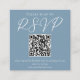 Dusty Blue White Wedding QR Code RSVP Enclosure Card