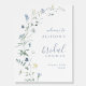 Elegant delicate watercolor wildflower wreath and your event details. Pastel palettes of soft yellow, off white, sage green, dusty blue, and botanical greenery, simple and romantic. Great floral bridal shower welcome sign for modern rustic wedding, country garden wedding, and boho wedding in spring and summer.