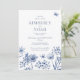 Plain white envelopes are included with paper invitations and will come to fit the invitation size you select. If you don’t need the envelopes, you may choose to not receive them by selecting the dropdown below "Envelopes" and choosing "None." If you’d like to have a design on your envelopes, you can browse all of these available envelopes to find the design that complements your Dusty Blue Watercolor Floral Modern Wedding Invitation.