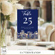 This Dusty Blue Watercolor Wildflowers Elegant Script Navy Wedding 5 x 7 Table Number showcases delicate watercolor wildflowers in dusty blue, purple, and yellow on a navy blue background, complemented by contemporary typography and script calligraphy in white. The formal design and wording will add a touch of elegance to your wedding celebration.