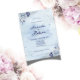 Plain white envelopes are included with paper invitations and will come to fit the invitation size you select. If you don’t need the envelopes, you may choose to not receive them by selecting the dropdown below "Envelopes" and choosing "None." If you’d like to have a design on your envelopes, you can browse all of these available envelopes to find the design that complements your Dusty Blue Winter Floral Wedding Invitation.