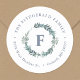 Dusty Blue Wreath Monogram Return Address Classic Round Sticker