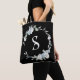 Dusty Blue Wreath Script Initial Monogram Black Tote Bag