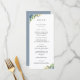 Dusty blue, yellow botanical floral and watercolor greenery. Modern and chic typography template with multiple lines for your custom menu items. Backing color shown in dusty blue can be customized.