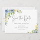 Dusty Blue Yellow Floral Photo Save the Date Announcement