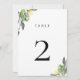 Chic dusty blue and yellow botanical floral table number card. Please note that table number cards must be numbered and added to cart individually.
