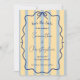 Whimsical and colorful wedding save the date featuring a sweet harmony of butter yellow, dusty blue stripes, a wavy doodle frame, and a blue bow. This simple yet romantic combination of its retro backdrop and elegant script calligraphy makes this invitation truly unique and fun.