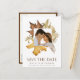 Dusty Brown Autumn Leaves Elegant Rustic Fall Wedding Save the Date Postcard. Pretty, elegant and modern wedding invitations for your special occasion! Perfect for the beautiful and calming autumn fall season! Watercolor dark light brown and golden yellow autumn leaf foliage square border with a variety of maple leaf, oak leaf and dried flowers frames the top of your wedding celebration details. Your names are featured in modern font at the top, and reverse card to reveal a dark brown pattern background at the back. Customize your wedding details, date, venue and more at the front.