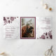 Dusty Burgundy Floral White Marble Photo Wedding Tri-Fold Invitation