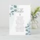 Individual table seating charts with elegant calligraphy, eucalyptus leaves and watercolor mist. Simple botanical design with watercolor foliage and greenery in dusty blue grey green. "Table" is hand lettered in elegant calligraphy and the table number is editable. Easy to create your own mini seating charts for each table - use the template to update the table number and guest list (click "customize further" if you need to adjust font size or line spacing).