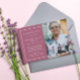 Funeral invitation in a lovely shade of fuchsia with cream colored details and fonts, and the space to add a photo of your loved one.