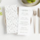 Sophisticated and whimsically botanical, these rustic wedding menu cards feature greenery leaves with white watercolor flowers.