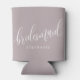 This elegant bridesmaid can cooler in a soft dusty lavender color features modern script text, perfect for celebrating your special day in style. Customizable with each bridesmaid’s name, this sleek design makes a thoughtful and functional gift for your bridal party. Ideal for wedding day festivities, bachelorette parties, and bridal showers, this stylish can cooler keeps drinks cold while adding a personal touch.