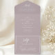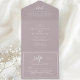 This all-in-one invitation features a dusty lavender purple backdrop paired with a modern script font, exuding minimalist elegance. The clear and easy-to-read design ensures your guests receive all the essential information for your wedding celebration.