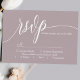 This dusty lavender purple RSVP card features a modern calligraphy script font, adding a touch of timeless grace to your wedding stationery. The minimalist design keeps the focus on the RSVP details, ensuring a clear and stylish response from your guests.