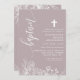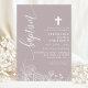 Dusty Lavender White Floral Elegant Script Baptism Invitation