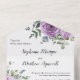These all in one wedding invitations feature a modern watercolor floral design with dusty mauve roses and eucalyptus leaf foliage. Personalize with your text. Other matching stationery and wedding reception products also available.