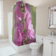A light pink mauve hollyhock garden flower shower curtain bring the love of the garden indoors.