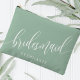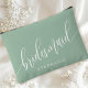 Celebrate your bridal party with this elegant dusty mint green bridesmaid accessory pouch. Featuring modern calligraphy and customizable with your bridesmaid's name, this pouch is both stylish and practical. The soft dusty sage color and elegant script create a sophisticated look, perfect for holding makeup, toiletries, or other essentials. This personalized pouch makes a thoughtful gift for your bridesmaids, adding a touch of luxury to their wedding day preparations.