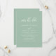This minimalist save the date card features beautiful dusty mint hues paired with elegant calligraphy script. With a modern and simple design, this versatile card is perfect for any season - spring, summer, winter, or fall. It exudes a classy and stylish vibe, perfect for a romantic, chic, or sophisticated wedding theme.