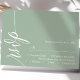 This dusty mint green RSVP card features graceful calligraphy script, adding a touch of sophistication to your wedding stationery. The minimalist design ensures clarity, while the elegant font lends a touch of formality.