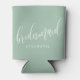 Dusty Mint Green Bridesmaid Modern Script Can Cooler
