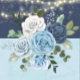 Design features a printed colored with floral element in shades dusty blue and navy blue and peony roses blooms with country string of lights on a blue watercolor background... Great for your wedding celebrations!